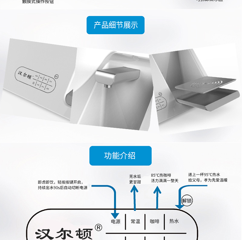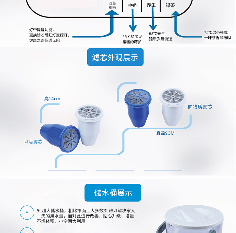 結(jié)構(gòu)功能:加熱一體凈水壺,光米復合超級凈化材料,無需RO膜,TDS直降到0,紫外線自控殺菌、兩秒快速加熱,自動抽水加斷水回吸功能。壺座瞬間斷水分離技術(shù),移動充電式補充高效殺菌功能。
