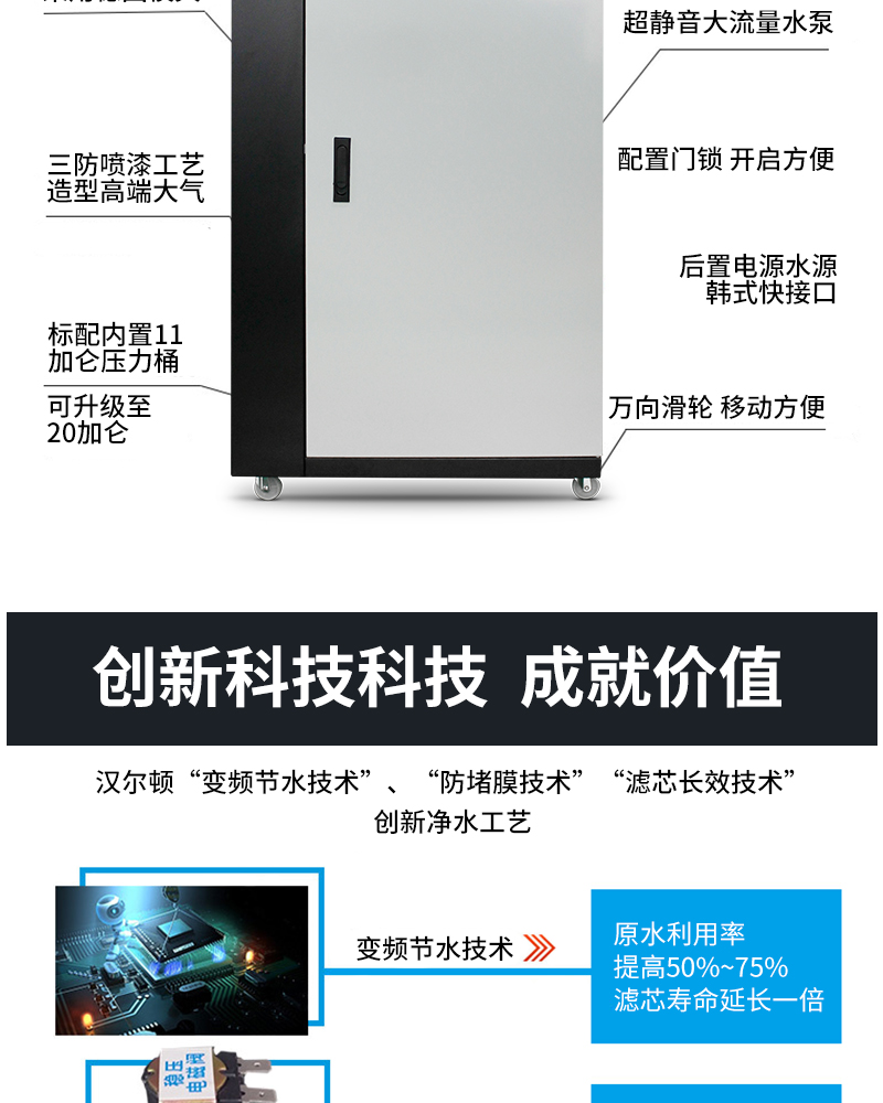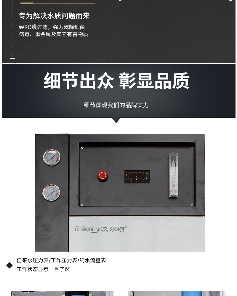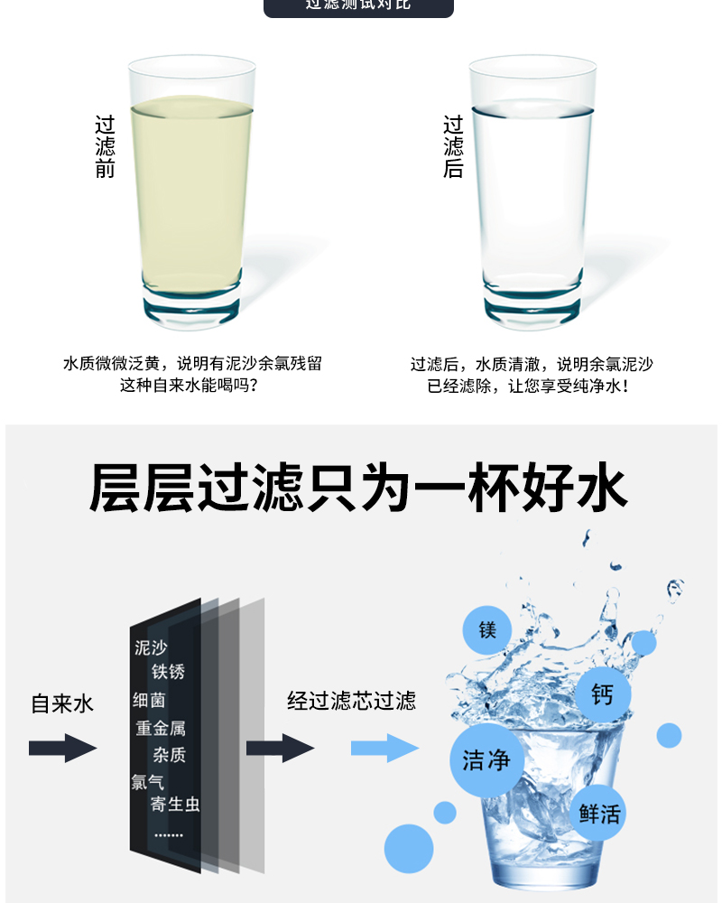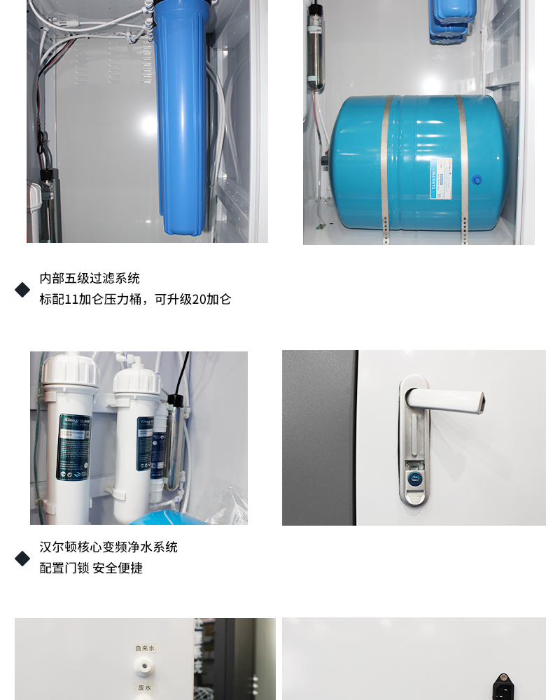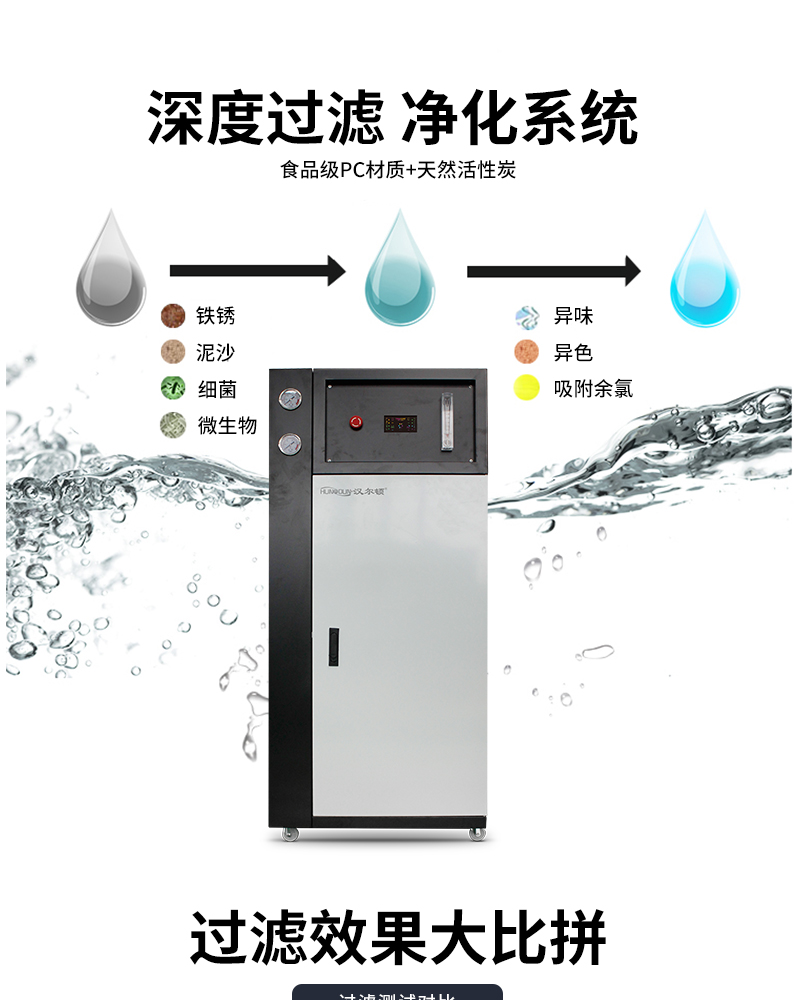 過濾系統(tǒng):初濾系統(tǒng)+吸附系統(tǒng)+直飲系統(tǒng)+反滲透系統(tǒng)+口感系統(tǒng)