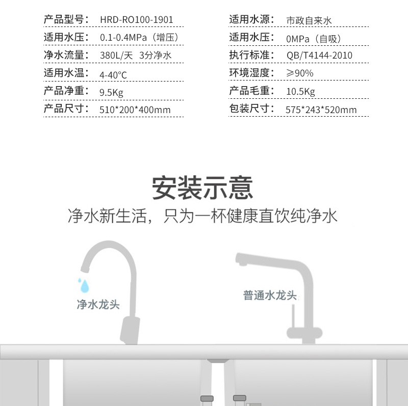 流量:380L/天 3分凈水