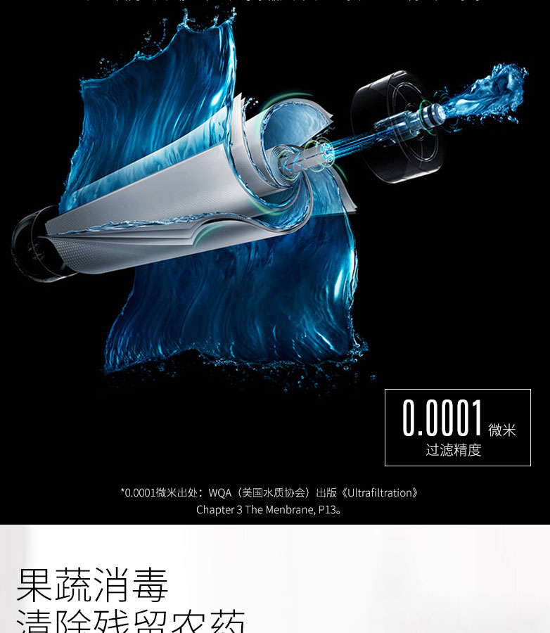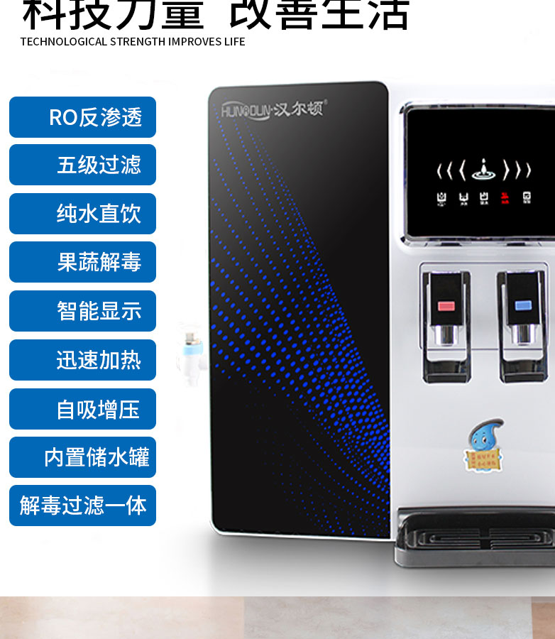 過濾工藝:初濾系統(tǒng)+吸附系統(tǒng)+直飲系統(tǒng)+反滲透系統(tǒng)+口感調(diào)節(jié)系統(tǒng)