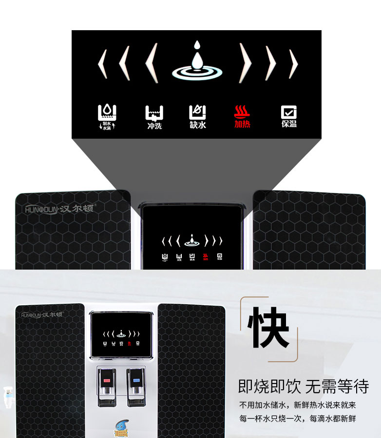 配置:漢爾頓國產(chǎn)標(biāo)配,國產(chǎn)濾芯、 國產(chǎn)PE水管、銅芯不銹鋼三通球閥,內(nèi)置水箱機(jī)械式出水。