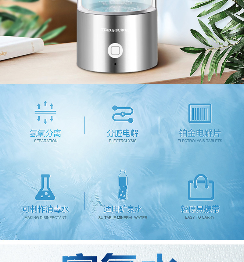 結(jié)構(gòu):便攜式氫氧分離水素杯,自帶清洗功能