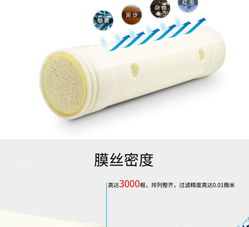過濾工藝:前置食品級不銹鋼網(wǎng)+合金PVDF復(fù)合超濾膜+KDF