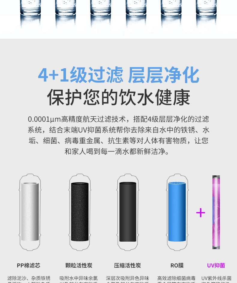 過(guò)濾工藝:初濾+吸附+直飲+反滲透