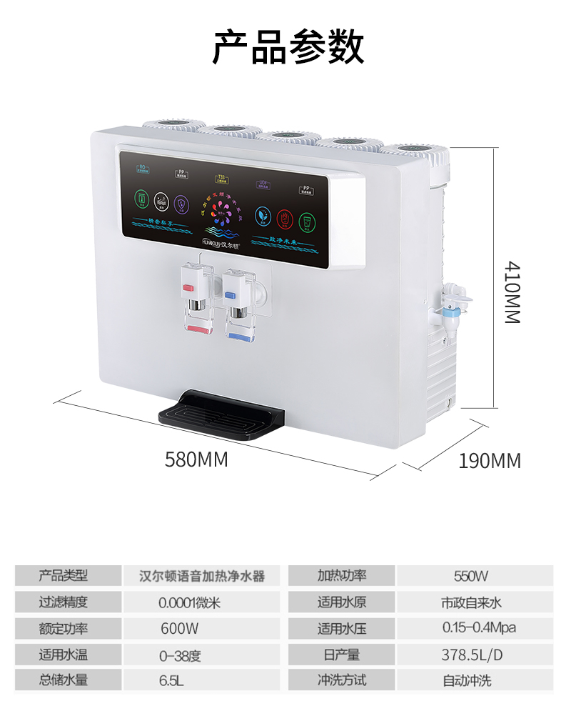 結構:分體式濾芯,帶LED液晶全電腦微控,智能語音播報