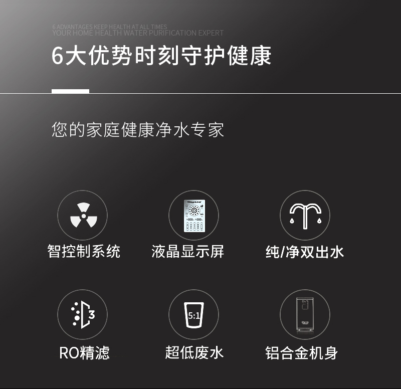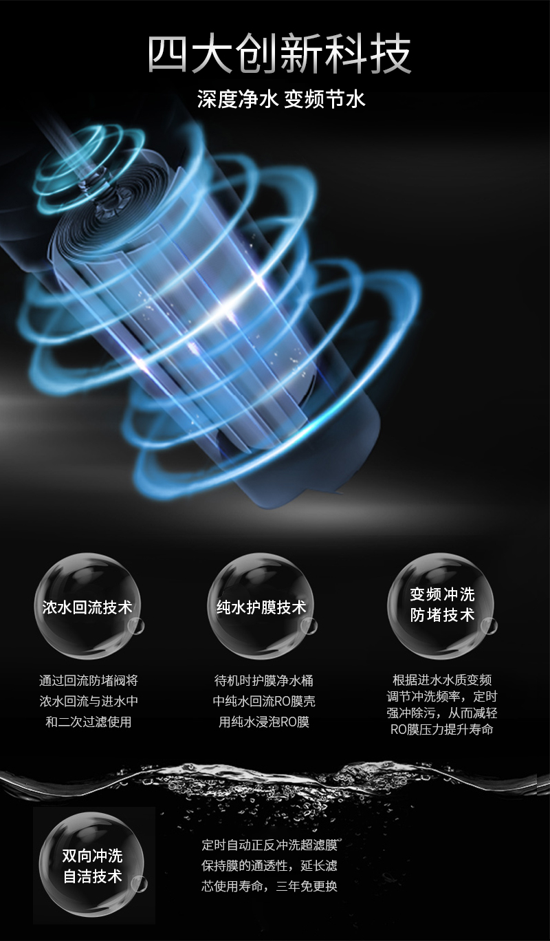 過濾工藝:初濾過濾+直飲系統(tǒng)+反滲透系統(tǒng)+口感調(diào)節(jié)系統(tǒng)