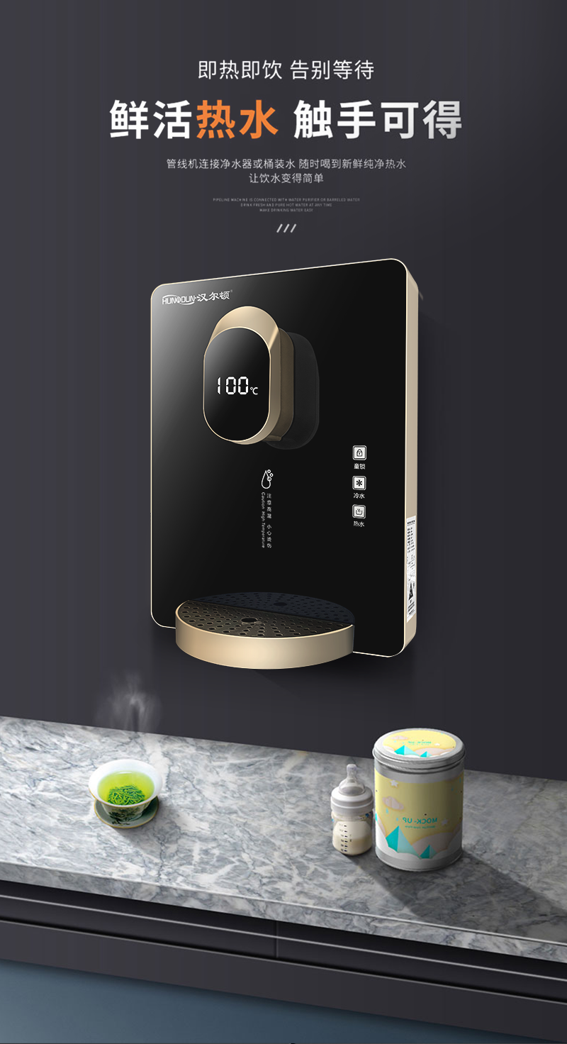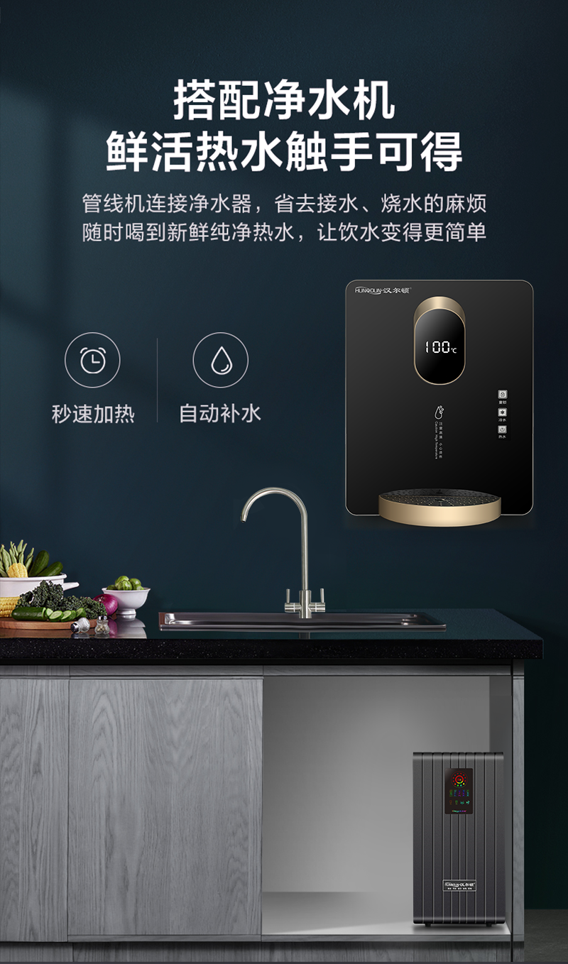 無內(nèi)膽3秒即熱5檔溫度 NVH超靜音設(shè)計 無人值守定量出水超薄機(jī)身 超大液晶顯示屏 鋼化玻璃面板觸摸按鍵